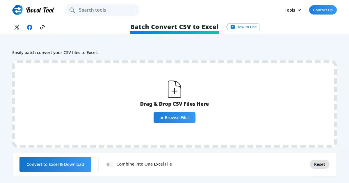 A free online tool to batch convert CSV files to Excel format in the browser. Converts multiple CSV files at once, with the results available for direct download.
