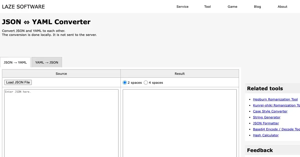 JSON ⇔ YAML Converter (lazesoftware.com)