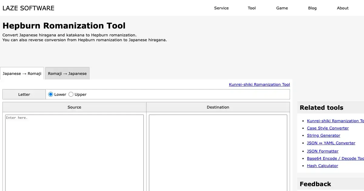 Hepburn Romanization Tool (lazesoftware.com)