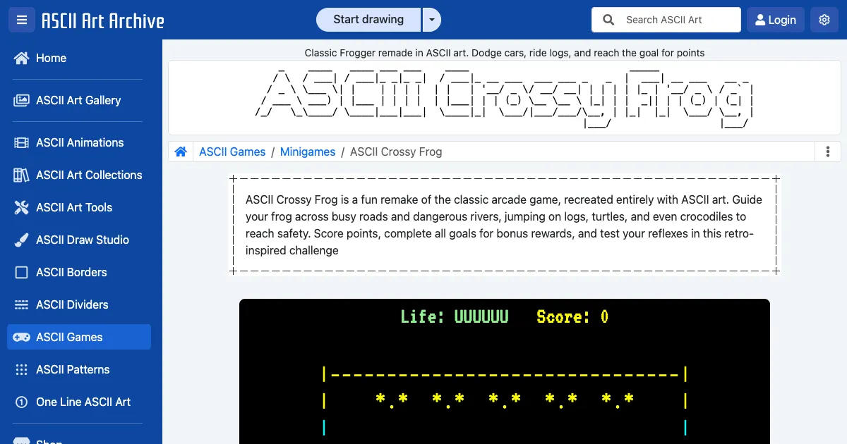 ASCII Crossy Frog