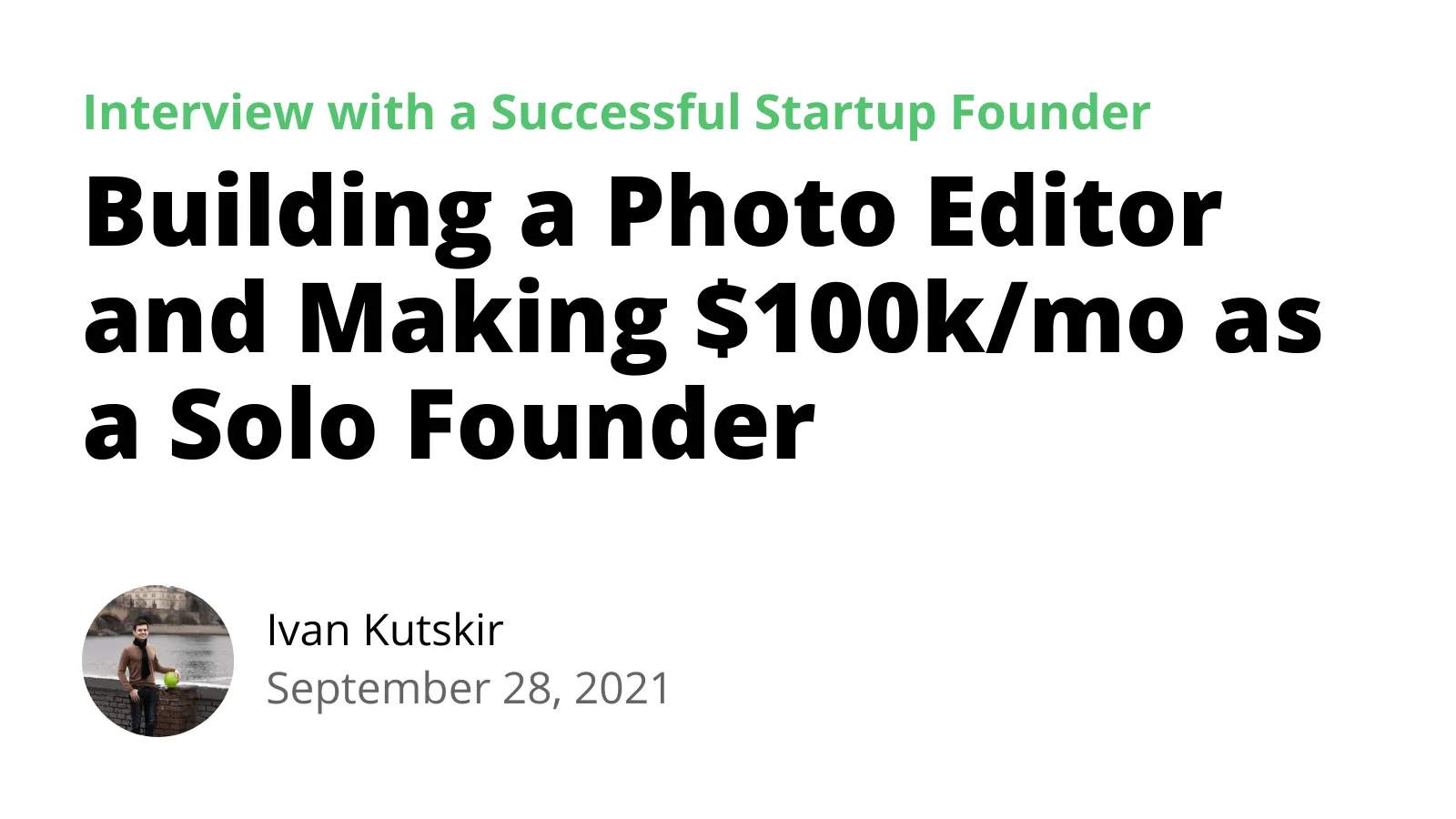 Ivan created Photopea, an advanced free photo editor, as a solo founder. It has 10 million sessions/month, and it's generating $100,000 a month from ads.