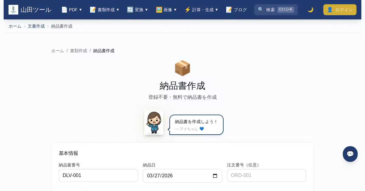 Delivery Slip Creator (yamada-tools.jp)