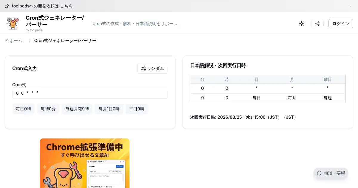 Cron式ジェネレーター/パーサー (toolpods.io)