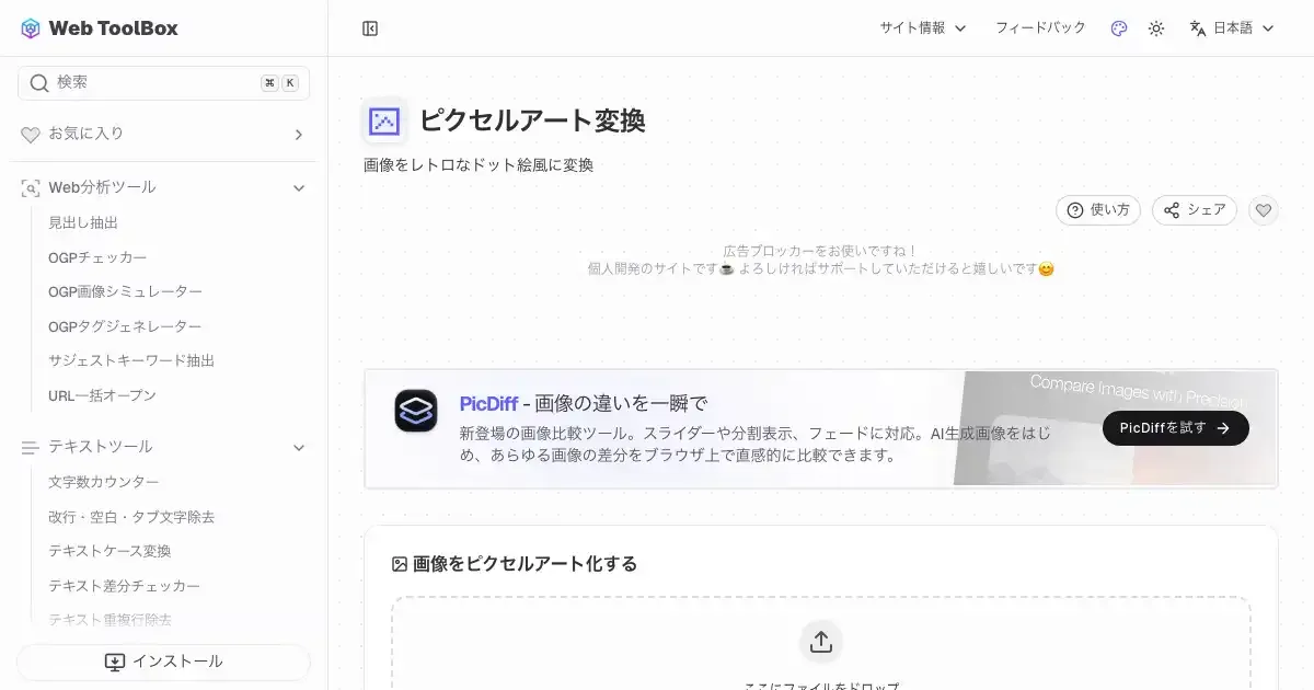 ピクセルアート変換 (web-toolbox.dev)