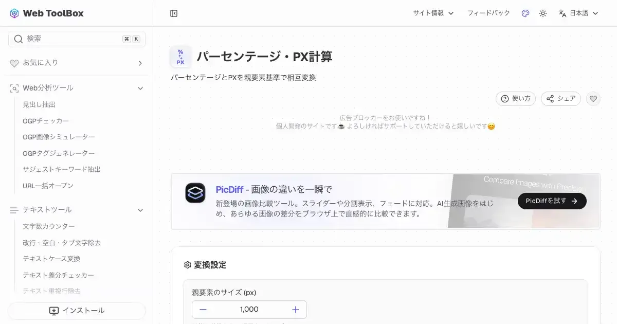 パーセンテージ・PX計算 (web-toolbox.dev)