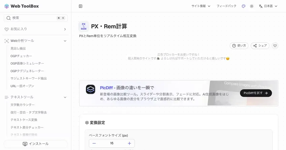 PX・Rem計算 (web-toolbox.dev)
