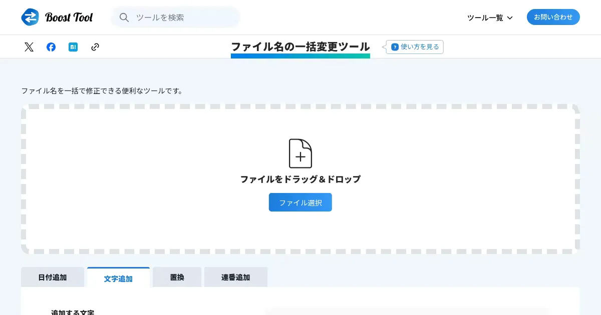 複数ファイルの名前をブラウザ上で一括変更できる無料オンラインツール。連番付けや文字列の置換など柔軟なリネームが可能で、変更後のファイルをそのままダウンロードできる。