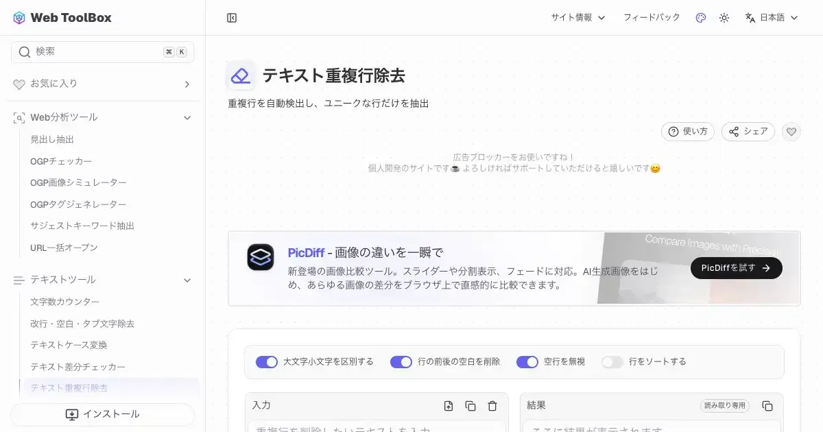 テキスト重複行除去 (web-toolbox.dev)