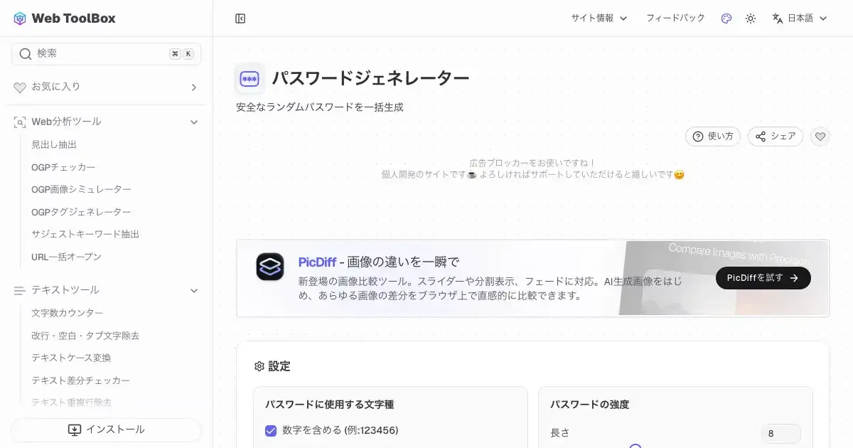 パスワードジェネレーター (web-toolbox.dev)