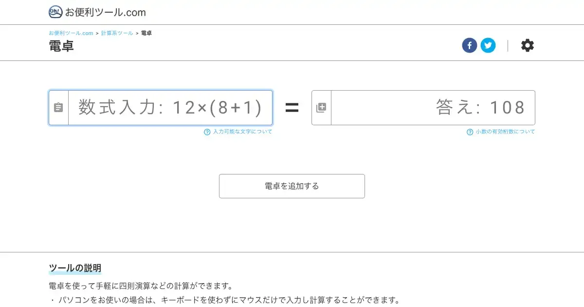 「電卓」に該当するツールを一覧できます。