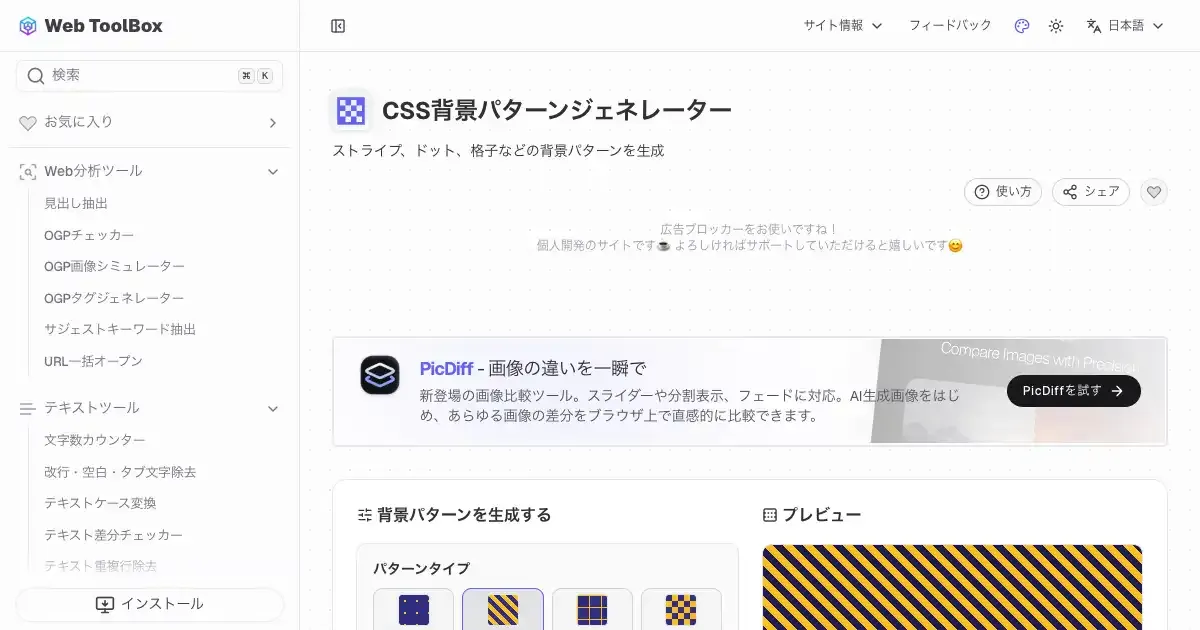 CSS背景パターンジェネレーター (web-toolbox.dev)