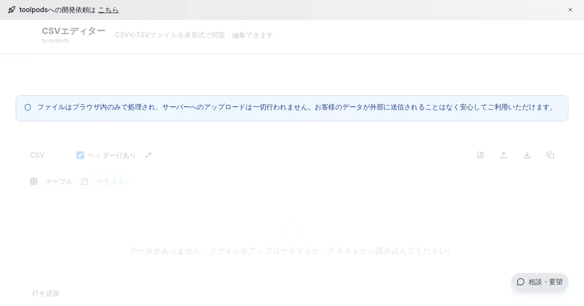 CSV ファイルをブラウザ上で Excel 形式に変換できる無料オンラインツール。複数の CSV ファイルを一括で変換でき、変換後のファイルをそのままダウンロードできる。