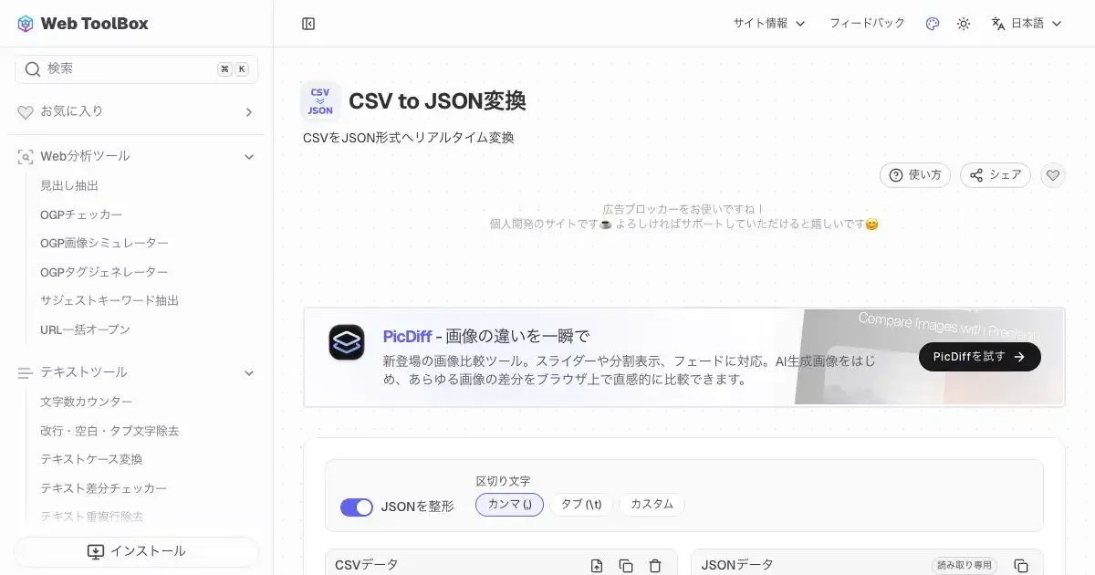 CSV to JSON変換 (web-toolbox.dev)