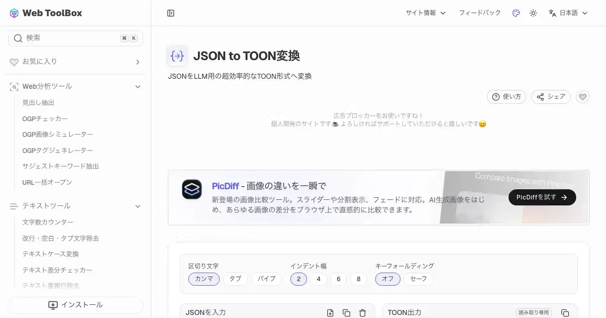 JSON整形 (web-toolbox.dev)