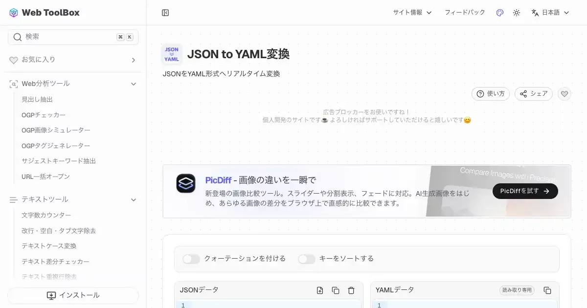 JSON to YAML変換 (web-toolbox.dev)