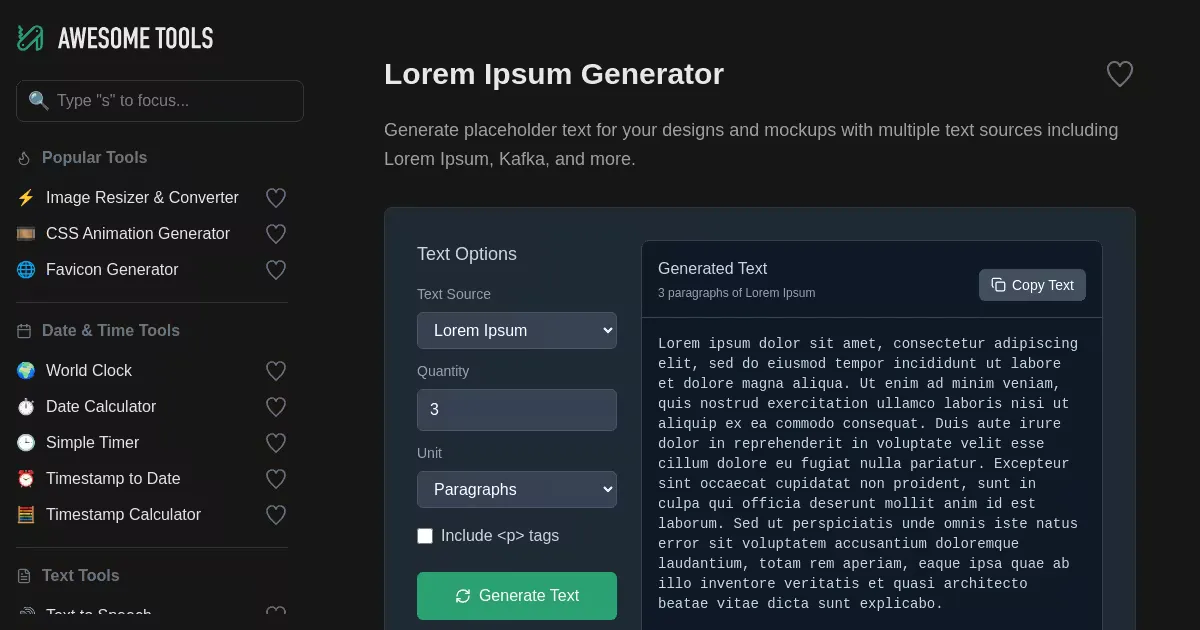 Lorem Ipsum ジェネレーター (awesometools.app)
