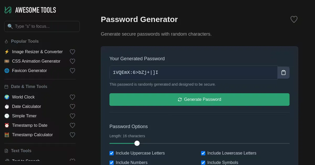 文字数や文字種(大文字・小文字・数字・記号)をカスタマイズして強力なパスワードを生成できるツール。記憶するパスワードは12〜16文字以上、APIキー等は32文字以上が推奨される。