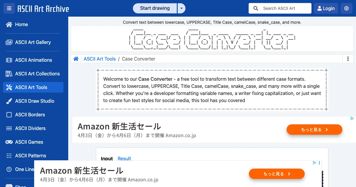 大文字小文字変換 (www.asciiart.eu)