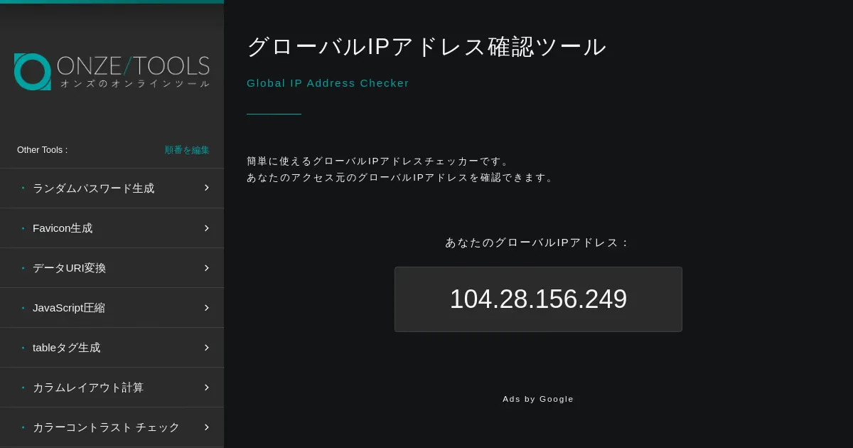 グローバルIPアドレス確認 (on-ze.com)