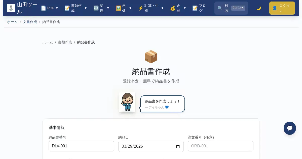 納品書作成 (yamada-tools.jp)