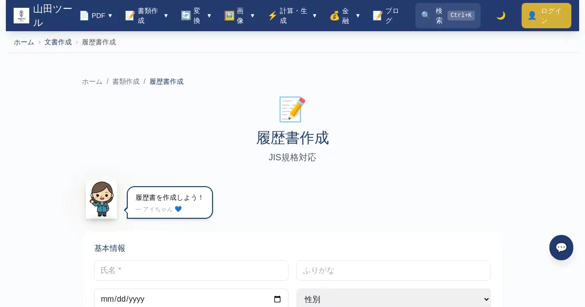 履歴書作成 (yamada-tools.jp)