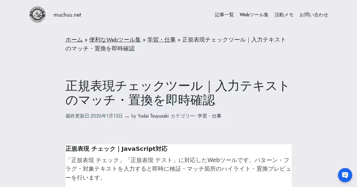 正規表現チェックツール (muchuu.net)